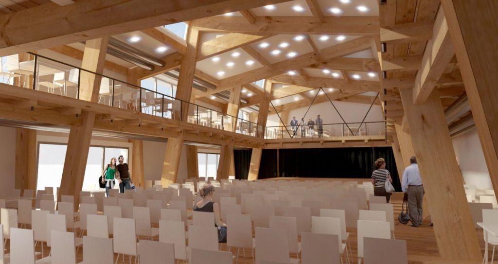 Kulturní dům by měl vstup směrem k náměstí. Při domluvě s majitelem sousedního pozemku nebo odkupu, by se dal využít i prostor mezi restaurací a KD jako předprostor i místo, kam si lidé zajdou o přestávce v rámci představení apod. Na vstup by navazovala šatna a foyer, odkud se dostanete na toalety a k baru. V přízemí by potom byl samotný hlavní sál s kapacitou 100 lidí na sezení při zachování plochy pro tanec. Sál je navržen s rovnou podlahou, sestavitelným podiem nebo naopak hledištěm z praktikáblů pro maximalizaci možného využití sálu. Za podiem by byl přístup do malého zázemí jeviště s výtahem, odkud by se herci dostali do 1. patra k zázemí herců a také skladu vybavení sálu.V horním patře, které má dvě výškové úrovně by potom byly další funkce. Současná knihovna by mohla být využita pro kanceláře obecního úřadu (pro přístup by se dal využít zmiňovaný výtah). Knihovna by pak byla přesunuta do většího prostoru a mohla by zde vzniknout také čítárna. Vedle knihovny je navržena také kuchyňka pro využití jak obecním úřadem tak pro herce při vystoupení. Na druhé straně se pak nachází malý sál, který by sloužil pro menší akce, rodinné oslavy, kurzy, zasedání, apod., pro které není za potřebí velkého sálu, sem by byl také samostatný přístup z foyer v přízemí. Tento sál je také napojený na hygienické zázemí, takže v případě představení ve spodním sále by se rozdělil na dvě poloviny a využíval by se jako zázemí herců. V případě větší akce je možné propojit menší sál s ochozem a tím ho provozně a vizuálně propojit s hlavním sálem.