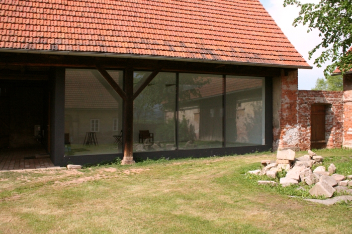 skici možného dispozičního uspořádání sýpky při využití na expozice a workshopy apod.