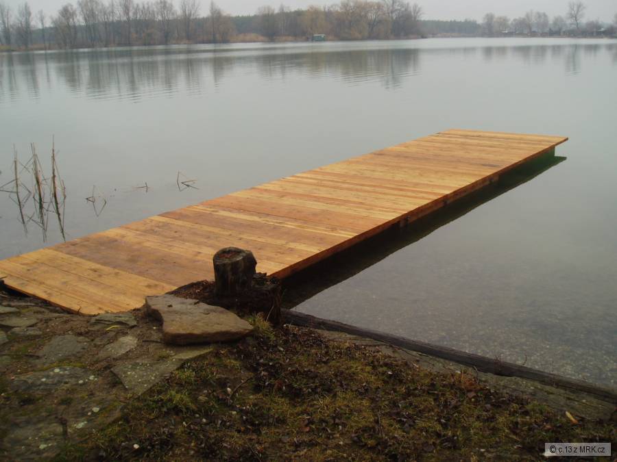 Na 2 místa navrhujeme umístit molo jako rozšíření úzkého břehu, v severnější části pak také s přístřeškem pro případ nepřízně počasí. Současně zde navrhujeme umístit menší stavbu jako zázemí pro rybáře s toaletou, skladem náčiní apod. a lavičky. Lavičky můžou být také formou masivních trámů v nepravidelném uspořádání a sloužit tak zároveň jako prvek pro děti.