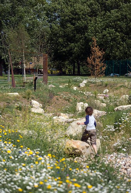 Potok protíkající obcí je vždy hodnota, v současnosti jsou ale břehy Daníže v Hnanicích velmi strohé a chudé, pro podporu živočichů a obecně života ve vodě a současně pobytové kvality břehů potoka navrhujeme umístit do potoka kameny, vodní rostliny a na okraj jednoduché schodky nebo lávky na posezení.