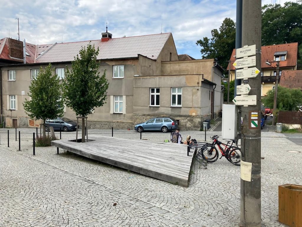 V rámci návsi by se také měly objevit vyvýšené záhony s lavičkami po okrajích, zabránění vjezdu aut do středu náměstí může být řešeno zahrazovacími sloupky proti vjezdu aut. Umisťujeme zde také multifunkční podium pro různé akce, ale i posezení. Podniky na návsi by mohly expandovat do veřejného prostoru například stolky a židličkami, teráskou apod. Kolem kostela směrem od cesty navrhujeme umístit bohatší zelený pás s luční směsí, který bude tvořit malebný a reprezentativní předprostor pro kostel. V rámci revitalizace by také mohl být zajímavě nasvícen nejen prostor návsi, ale také sochy a kostel.